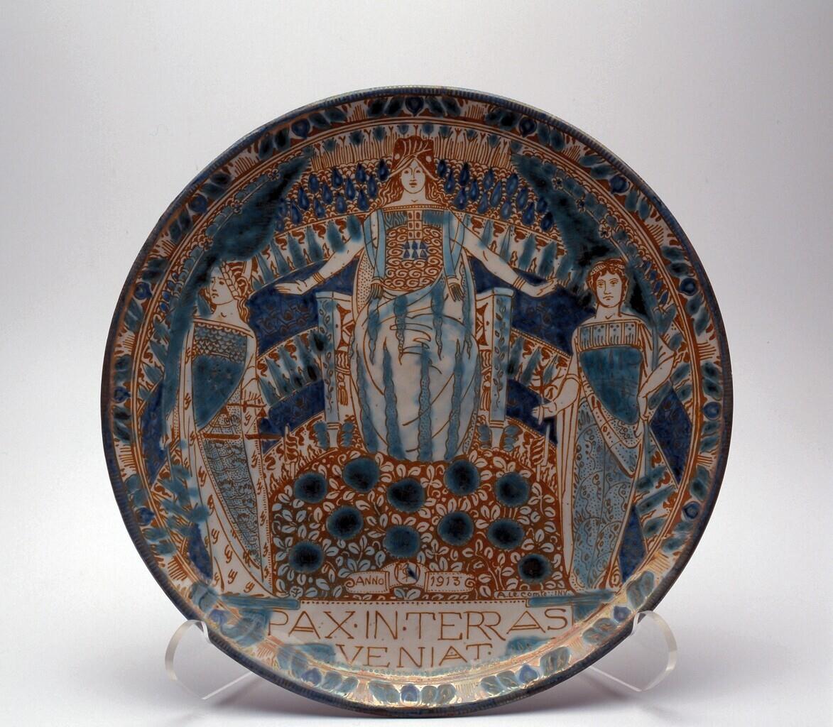 - aardewerk (Nieuw Delfts: Luster), engobe, lusterglazuur polychroom