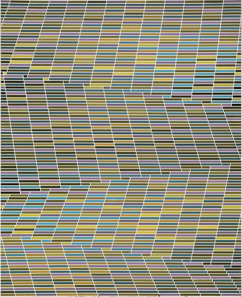 Strookjes in meerdere felle kleuren op witte achtergrond. Kleur en vorm vormen samen een structuur.