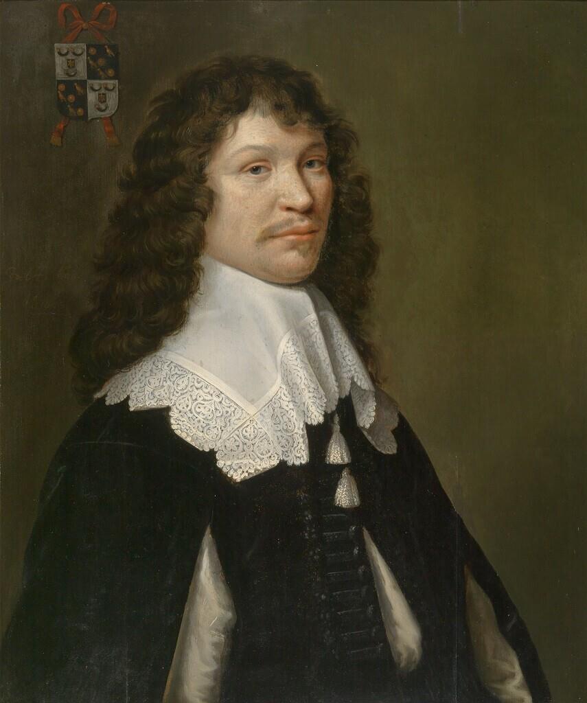 Portret van Pieter de Groot (1615-1678), ten halve lijve, 'en trois-quarts' naar rechts. De geportretteerde draagt een grote witte kanten kraag. Linksboven in de compositie het familiewapen van De Groot.