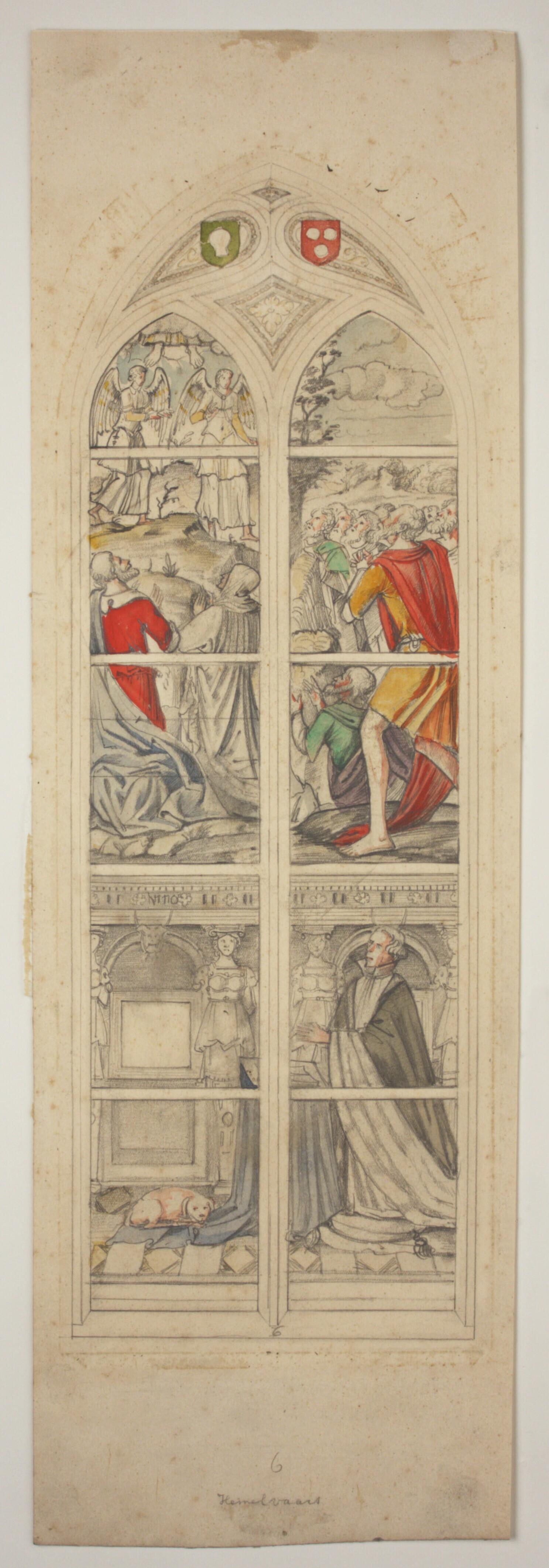 - Ontwerptekening van een glas-in-loodraam met de hemelvaart van Christus