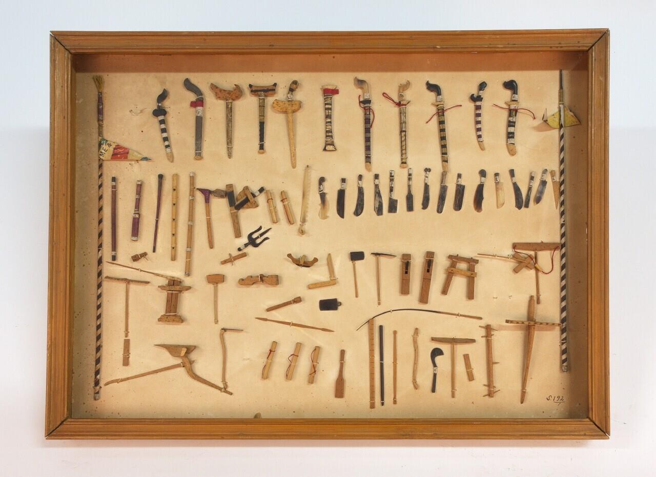 modellen van steekwapens van wapens, timmergereedschap, spinnewiel, weefgetouw, landbouwgereedschap, muziekinstrumenten