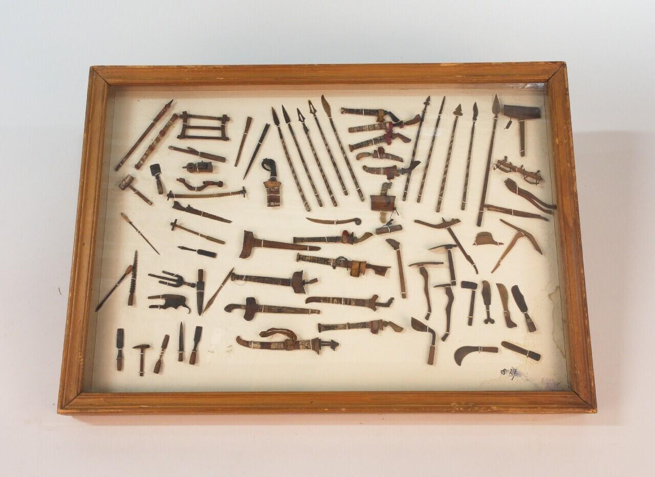 - modellen van krissen, dolken, zwaarden, houwwapens, lansen en gereedschap