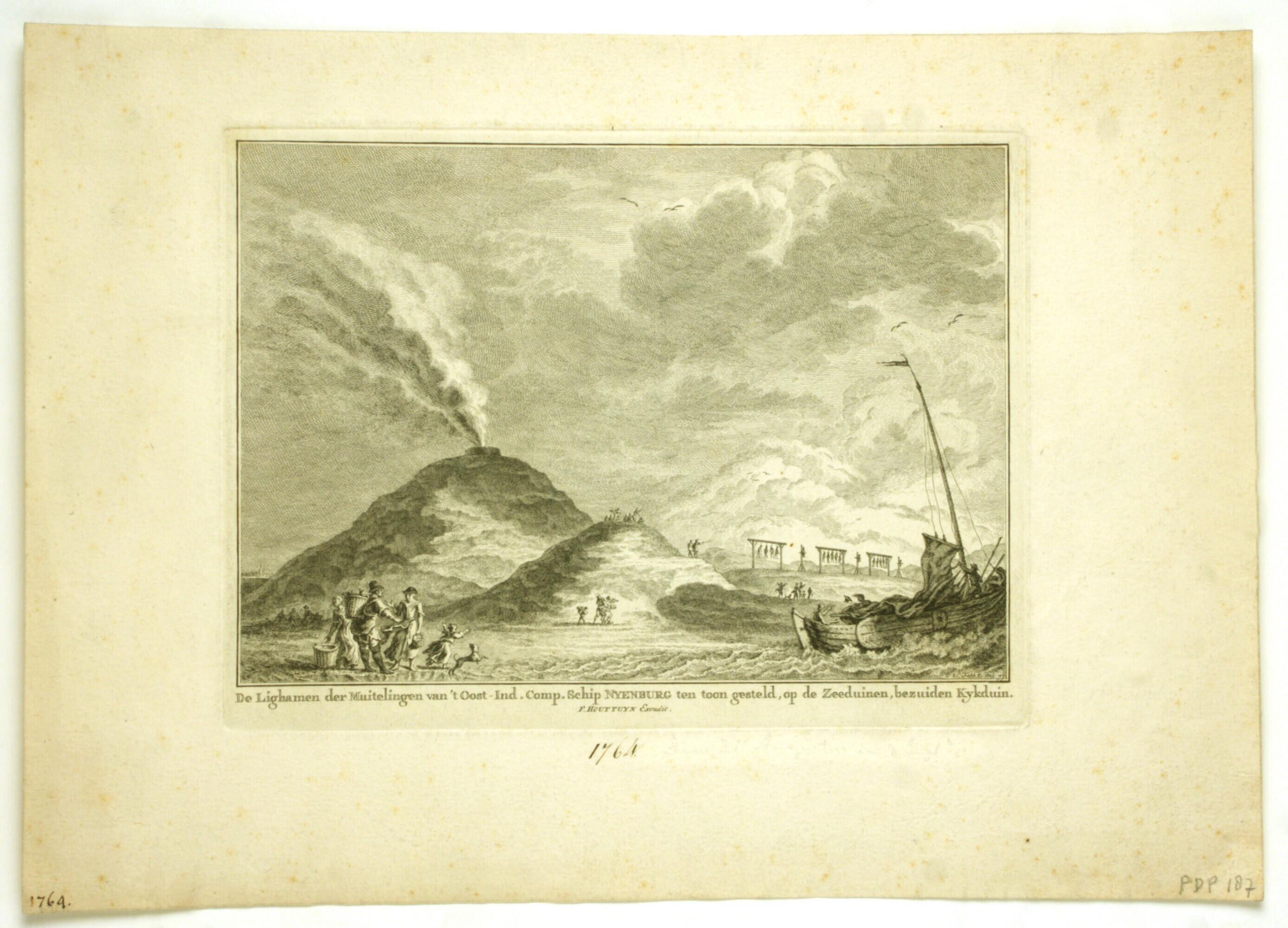 - 'De Lighamen der Muitelingen van 't Oost-Ind. Comp. Schip Nyenburg ten toon gesteld, op de Zeeduinen, bezuiden Kykduin'