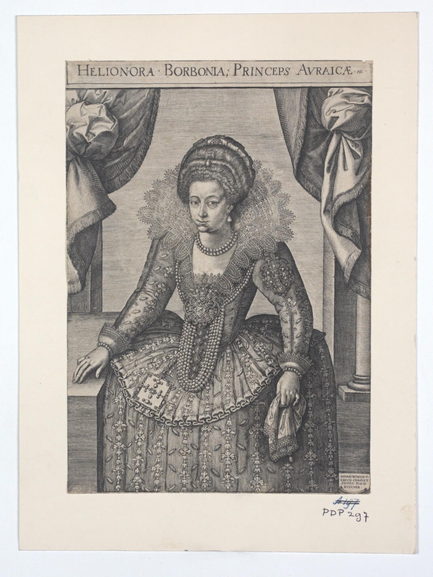 opschrift; 'Helionora Borbonia Princeps Auraicae etc'