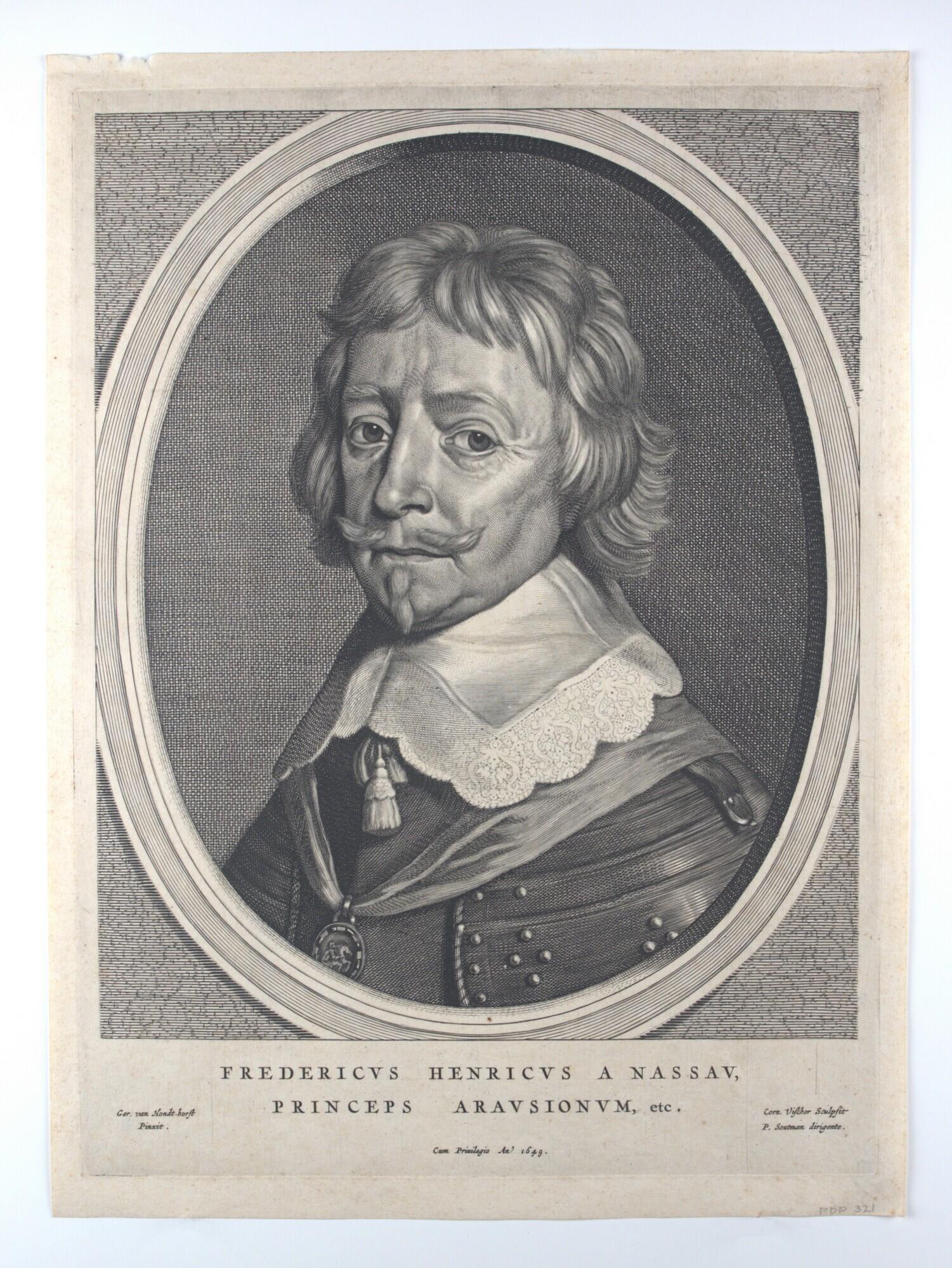 - SignatureGer. van Hondt-horst Pinxit (linksonder); Corn. Vischer Sculpsit P. Soutman dirigente (rechtsonder); Cum Privilegio An 1649. (middenonder)