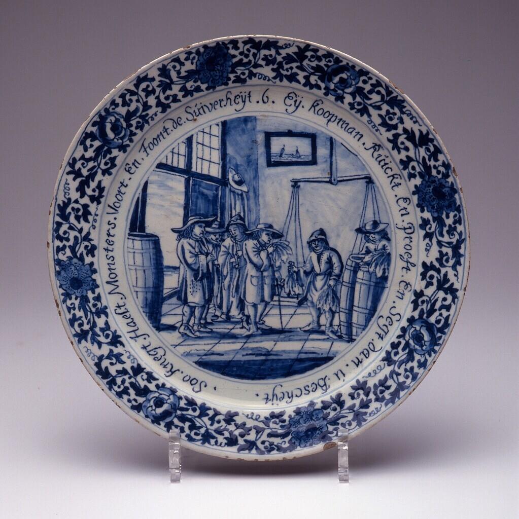 Inscription.Soo.Knegt.Haelt.Monsters.Voort.En.Toont.de Suiverheijt.6.Eij.Koopman.Ruickt.En.Proeft.En.Segt.dan.u.Bescheijt. (voorkant)