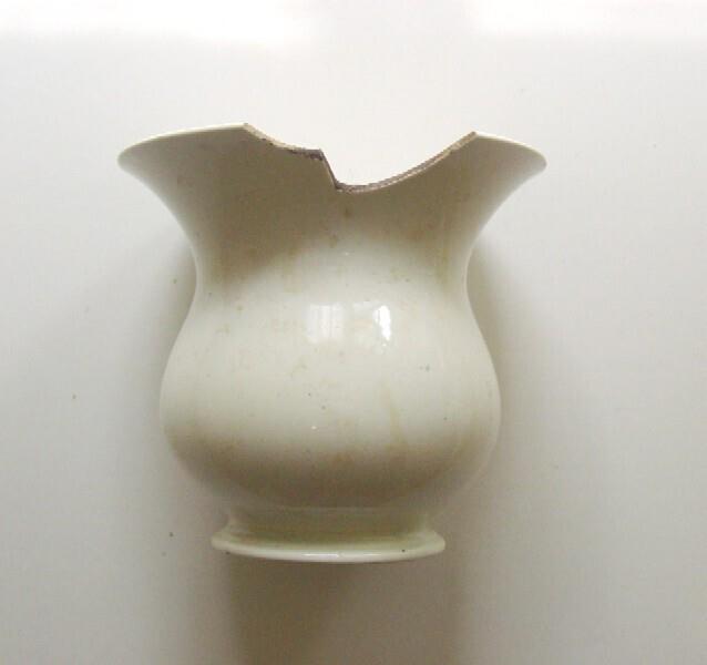 Industrieel vervaardigde kwispedoor (spuugpotje bij het tabakspruimen) van wit aardewerk met loodglazuur (creamware).