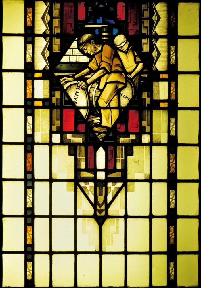 - Glas-in-loodraam 'Arbeiders met tonnen'