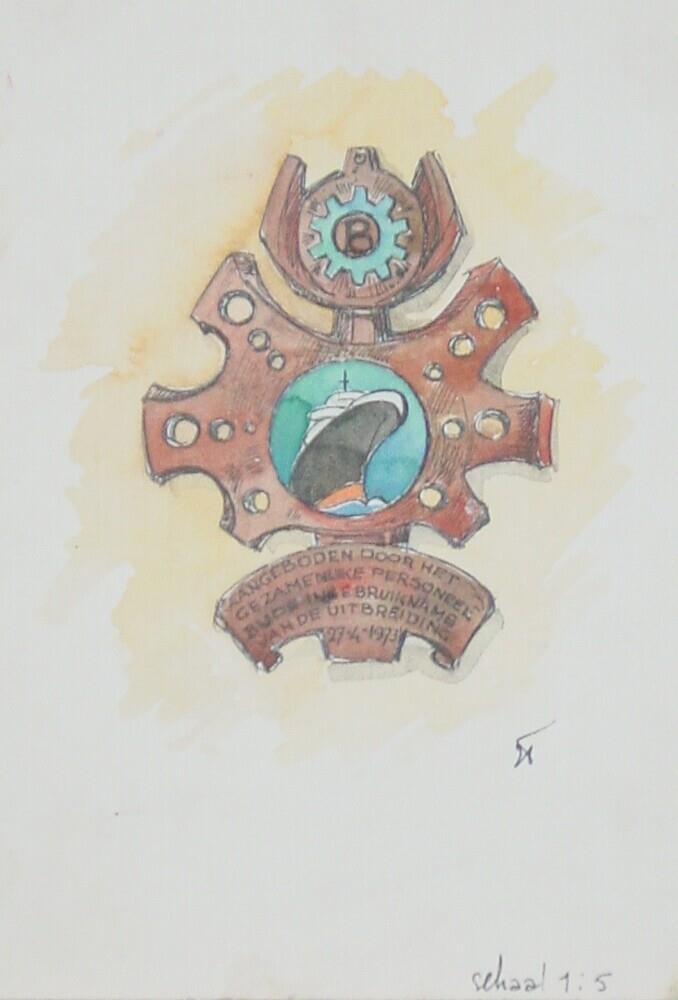 - 'aangeboden door het gezamenlijke personeel bij de ingebruikname van de uitbreiding 27-4-1973'