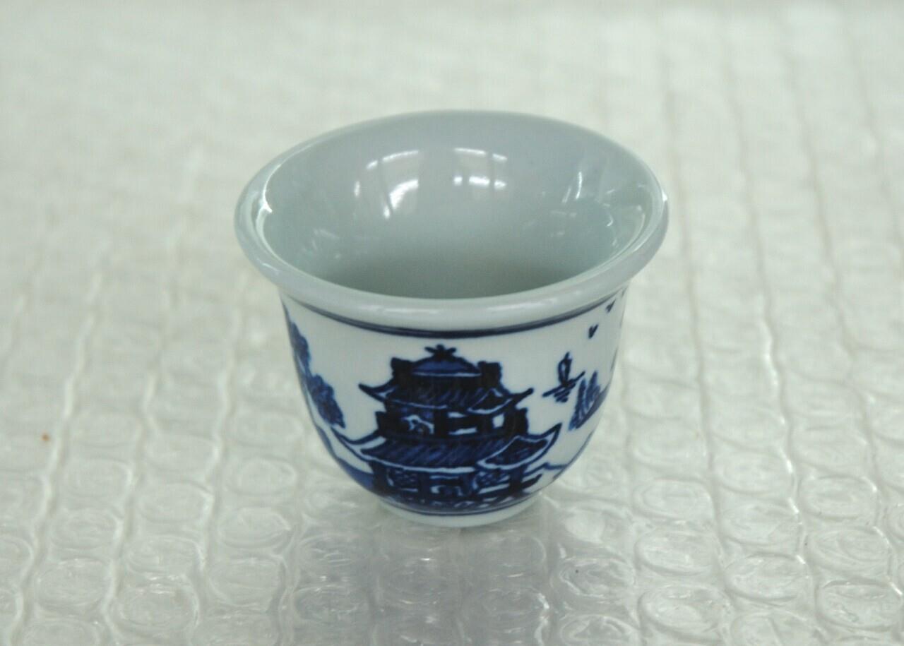 Kommetje met op de buitenzijde een decoratie van een Chinees landschap met brug en paviljoen.