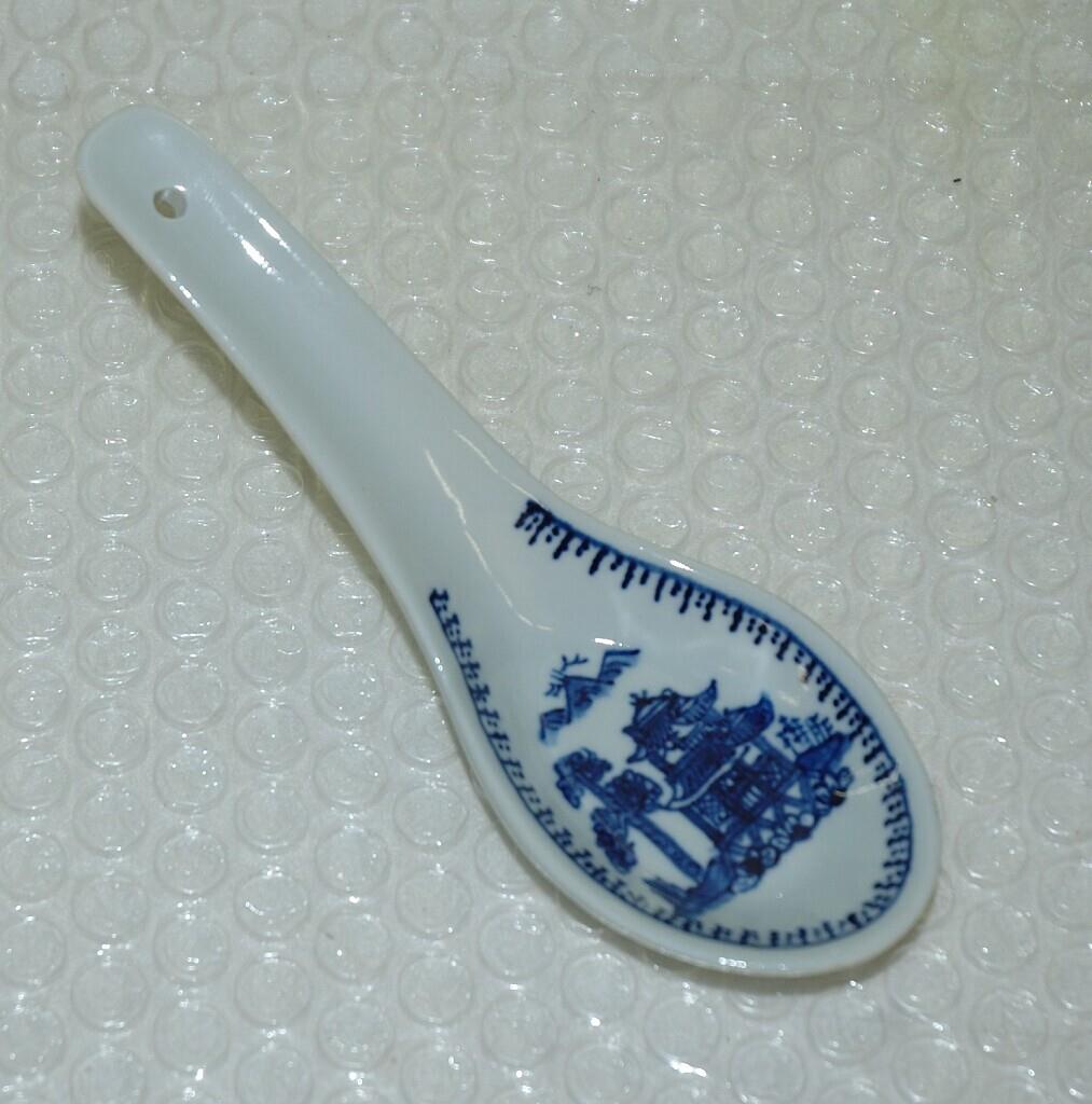 Lepel met een decoratie van een Chinees landschap met paviljoen.