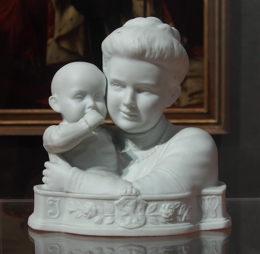 Beeldje van koningin Wilhelmina met prinses Juliana