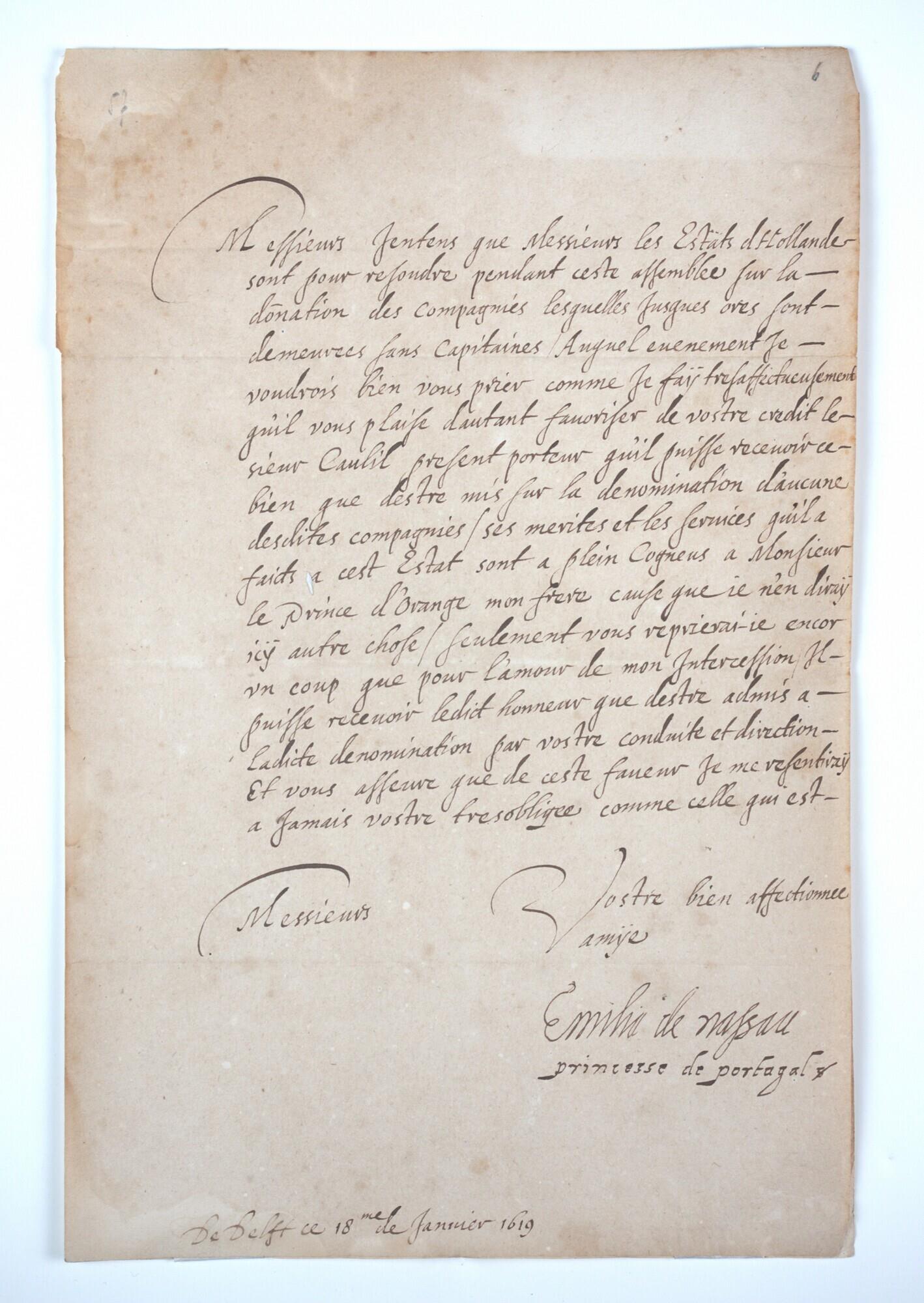Brief geschreven door Emilia van Nassau, 16 januari 1619