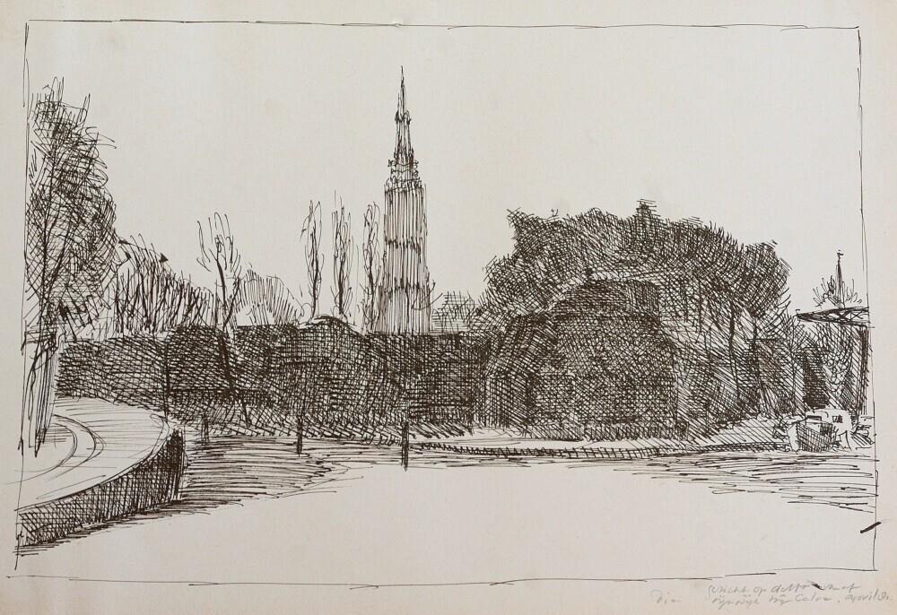 Gezicht op Delft vanaf Rijswijk bij Calvé