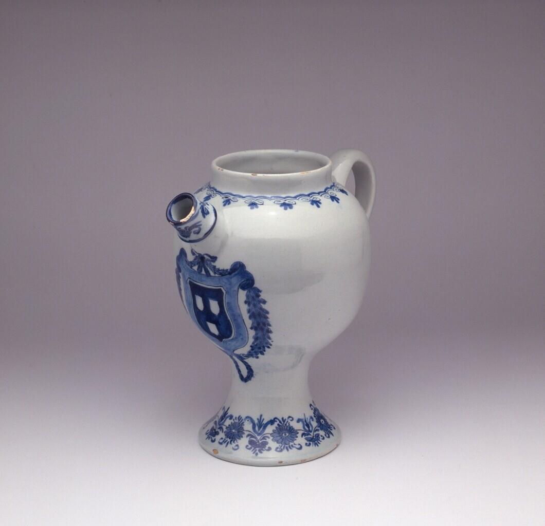 Delftse Plateelbakkersproef voor het behalen van het meesterschap in de vorm van een stroopkan met het wapen van het Sint Lucasgilde