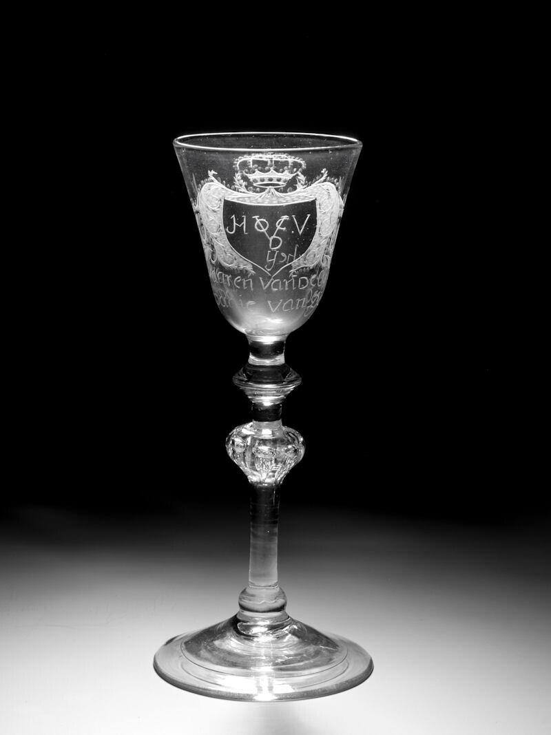 - wijnglas Verenigde Oost-Indische Compagnie, Delftse kamer 't Welvaaren van de Osstindische Companie van Delft'