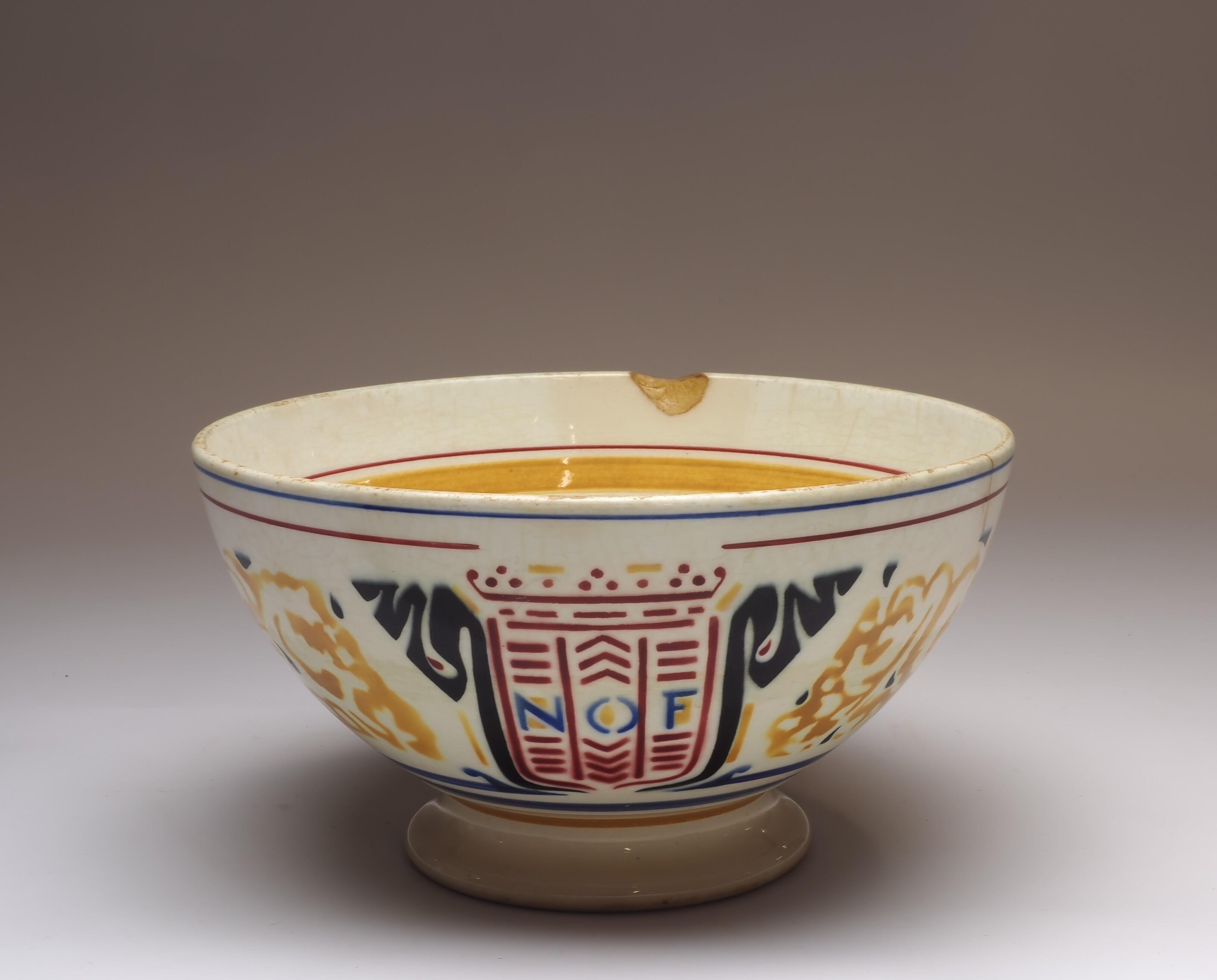 Aardewerk mayonaisekom N.O.F. Nederlandse Olie Fabriek