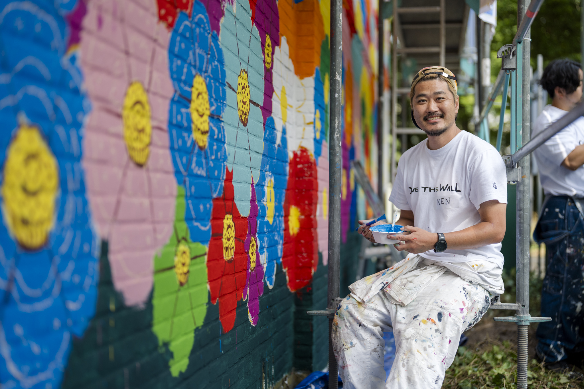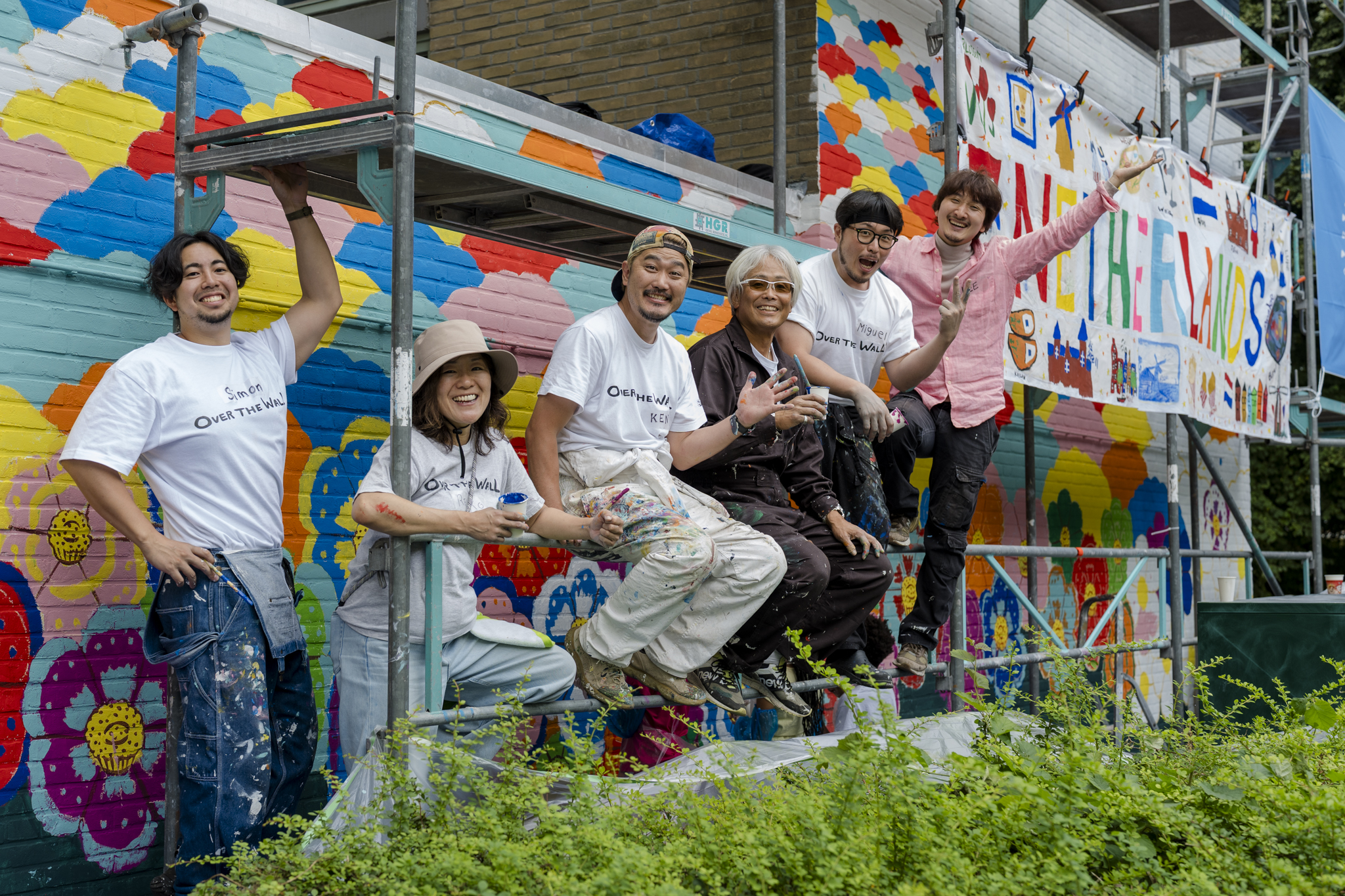 Kensuke Miyazaki realiseert onder de noemer Over the Wall jaarlijks grootschalige muurschilderingen samen met lokale gemeenschappen wereldwijd – van Kenia tot Oekraïne en van Ecuador tot Pakistan. Delft is de eerste stad in West-Europa die hij aandoet. Zijn werk staat in het teken van interculturele dialoog, verbondenheid en het overstijgen van grenzen –letterlijk én figuurlijk.