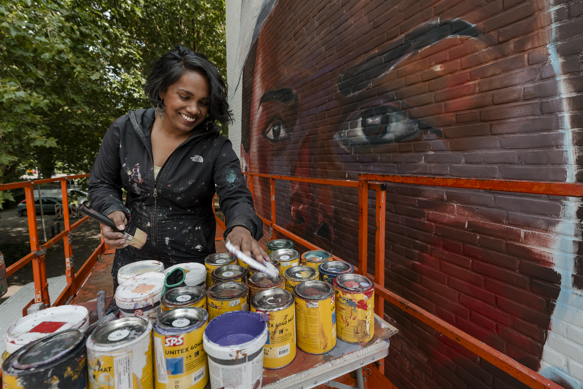 Laxmi Manuela op de hoogwerker