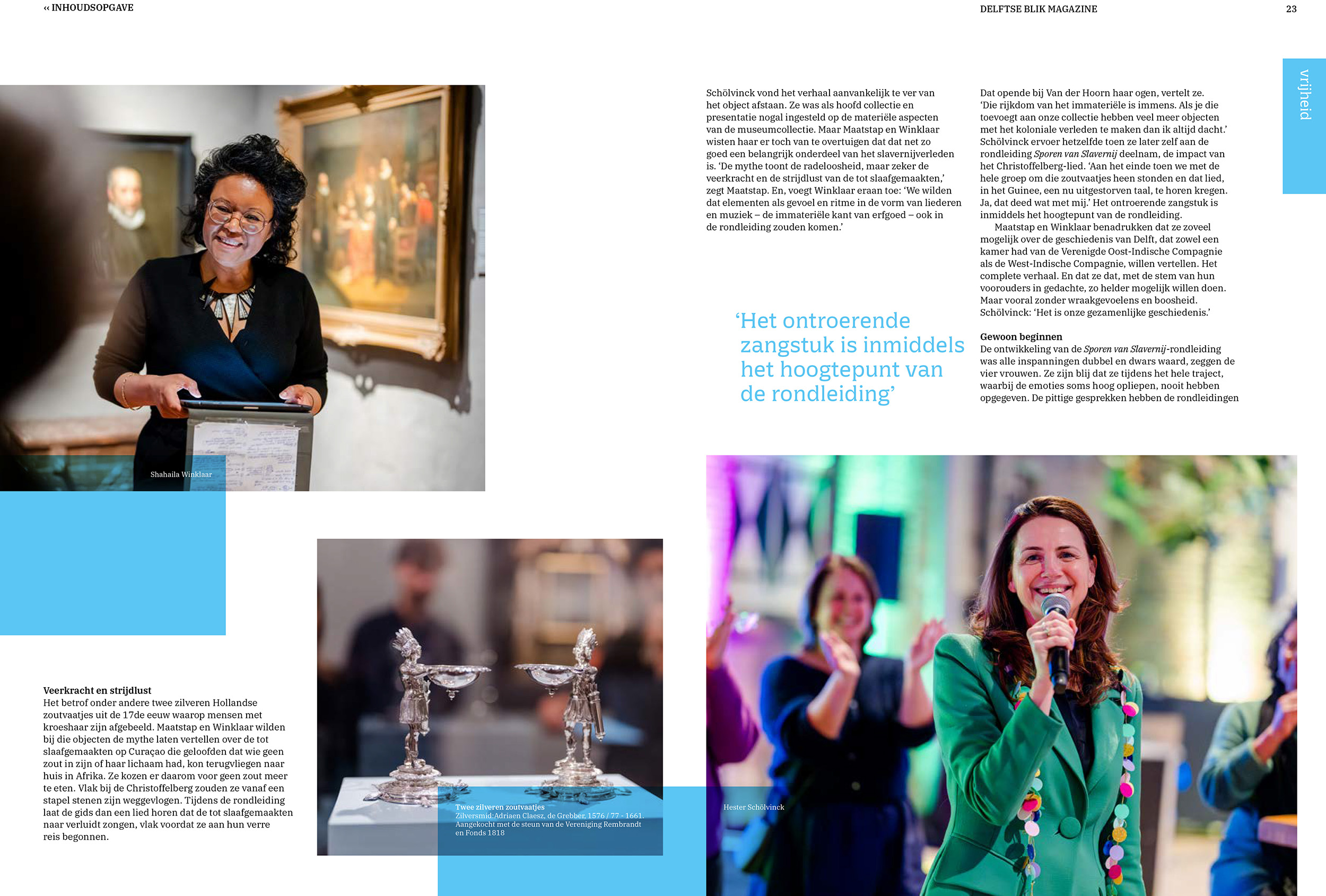 Vier jaar Delftse Blik heeft ons museum verrijkt en onze blik en die van onze bezoekers verruimd. De Delftse Blik bracht meerstemmigheid en verschillende perspectieven. We zijn op zoek gegaan naar stemmen die nog niet of onvoldoende gehoord worden om onze verhalen completer te maken. We hebben gedeeld, geluisterd en gebouwd aan een bredere blik. In co-creatie met diverse gemeenschappen zijn deze verhalen gekoppeld aan onze collectie en de verhalen van het museum.